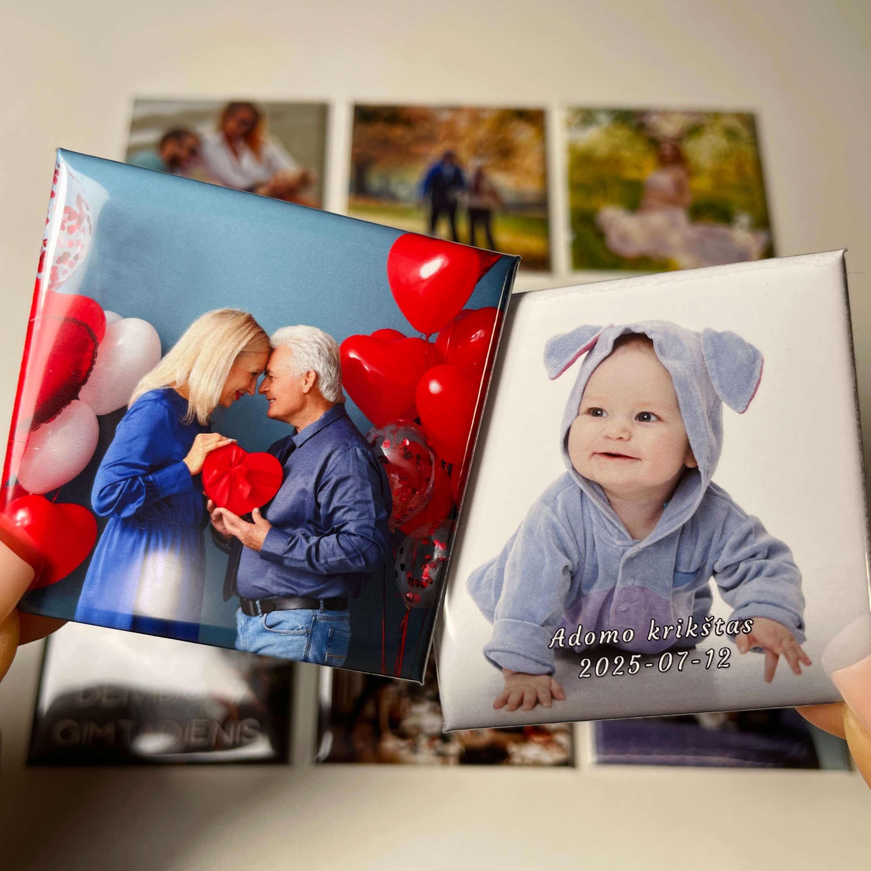 Nuotraukų magnetai – tai personalizuoti prisiminimai, kurie sugrąžins jus į džiaugsmo kupinas akimirkas ir sužadins gražiausius jausmus.